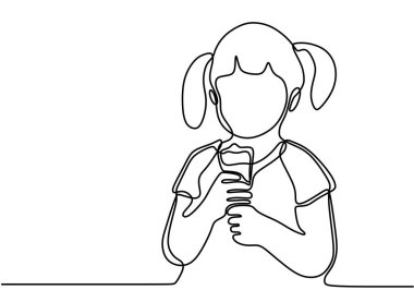 One Line Drawing of Boy Dpeople Eating Breakfst